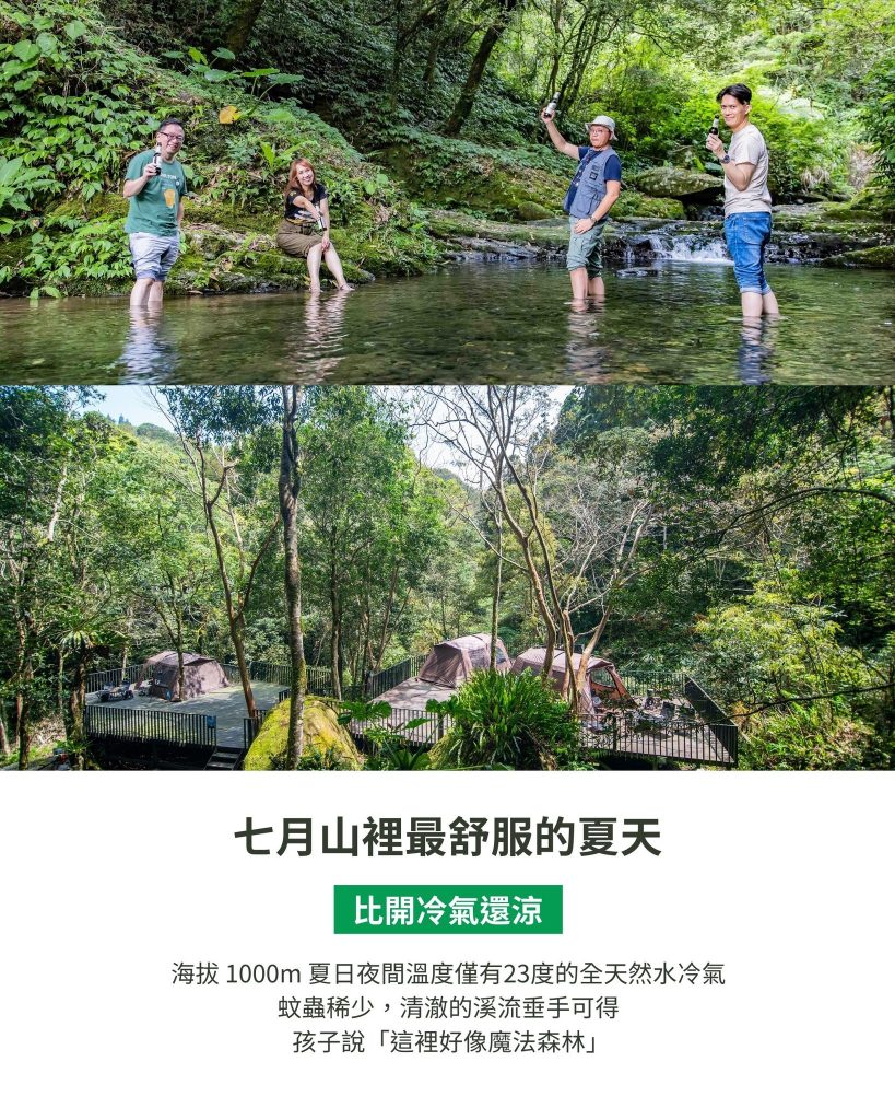 我們有分成多種露營區塊,每帳位置都有綠蔭、距離感,有的還能聽到溪流聲入眠唷!